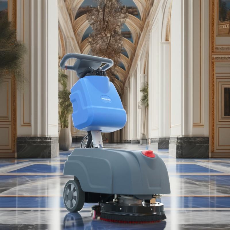 Esta fregadora industrial de suelos combina un diseño compacto con un rendimiento robusto para entornos comerciales exigentes. La fregadora de suelos M1, con operador a pie, cuenta con dos motores de 400 W y un ancho de cepillo de 350 mm, lo que proporciona resultados de limpieza exhaustivos y una maniobrabilidad excepcional en espacios reducidos.