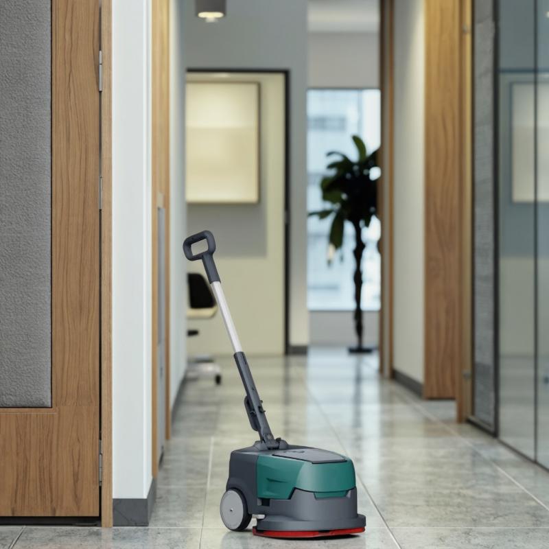 Esta fregadora compacta de 24 V con operador a pie integra funciones de lavado, fregado y secado para una limpieza comercial eficiente. Alimentada por una batería de litio de 25,6 V/6000 mAh, ofrece 90 minutos de funcionamiento continuo con un rendimiento ultrasilencioso de ≤70 dB, ideal para entornos sensibles al ruido, como hospitales y escuelas.